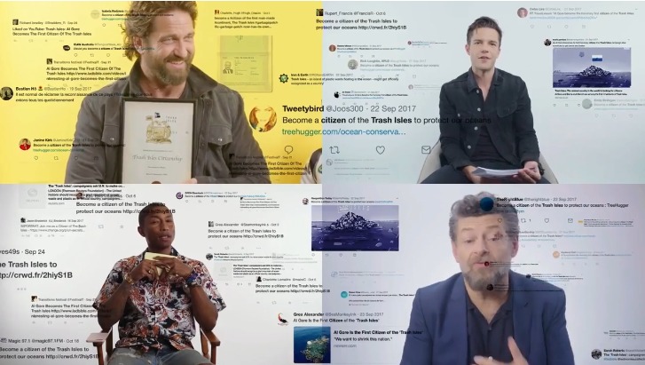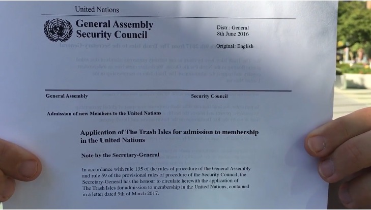 Os criativos decidiram declarar a mancha de lixo plástico como um país oficial: “The Trash Isles”. Foram criados os símbolos de estado (bandeira, passaporte de cidadão, moeda chamada “Debris”), preparados materiais artísticos e de lobby, solicitando reconhecimento da ONU. Os cidadãos “virtually” se inscreveram, receberam seus selos, e a ação se espalhou como protesto poético. A mídia virou território criativo.